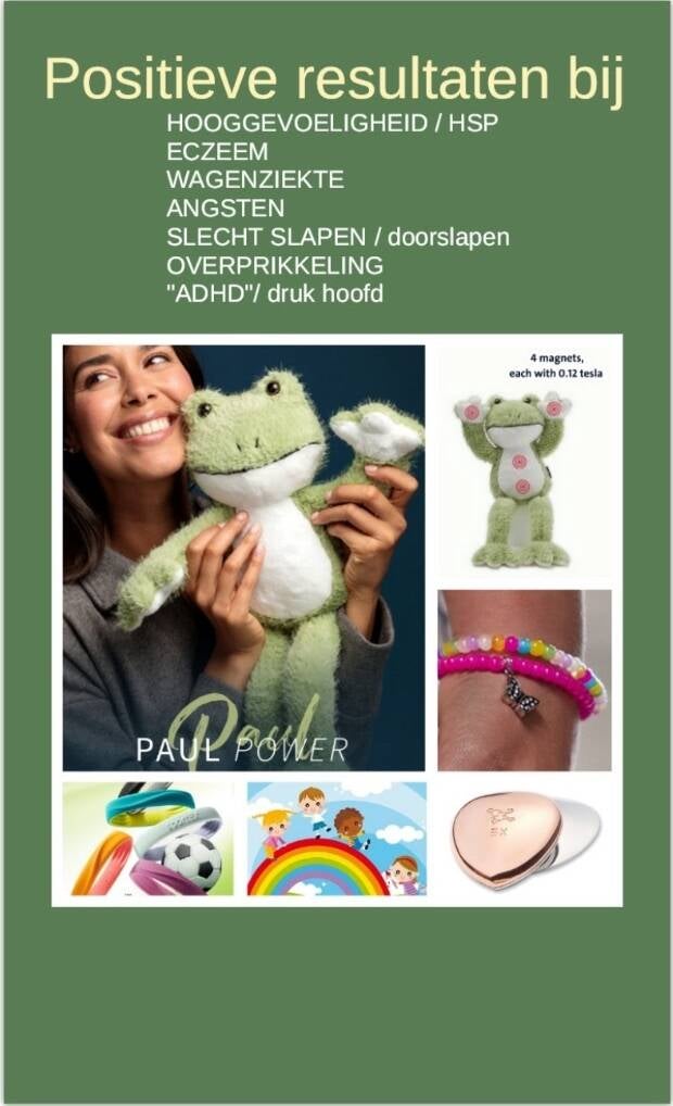 Ook onze superzachte knuffelkikker met magneten werkt super! Angsten, wagenziekte, slecht slapen voelen minder vervelend met Paul Power.
